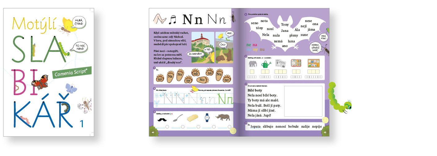 A co čtení? Společně s výukou písma Comenia Script® lze používat i běžný slabikář pro analyticko-syntetickou metodu, který obsahuje starší vázané písmo. To, že se děti s vázaným písmem takto seznámí, má i své výhody – naučí se toto písmo postupně přečíst.